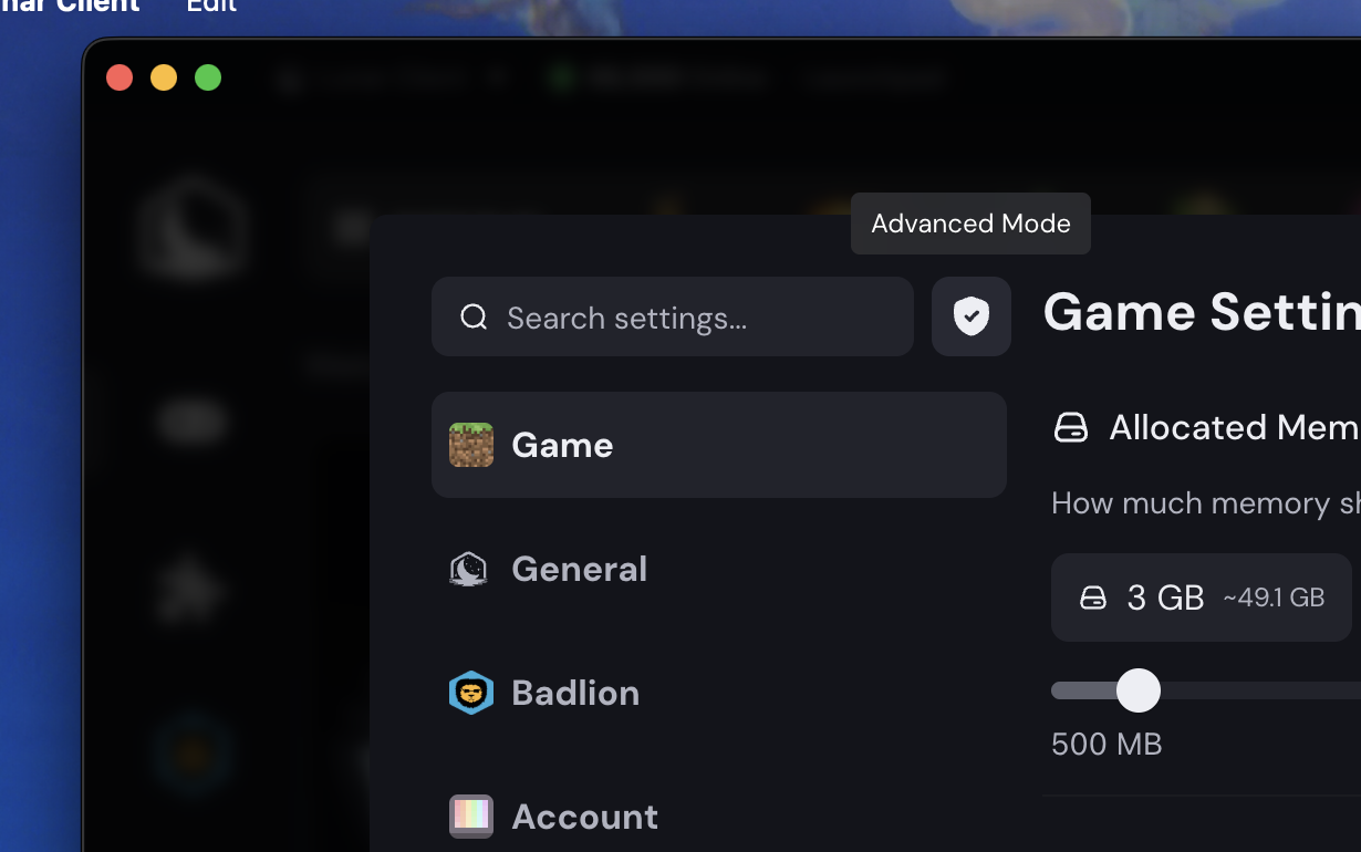 1. Open the Lunar Client launcher and navigate to the Settings page.