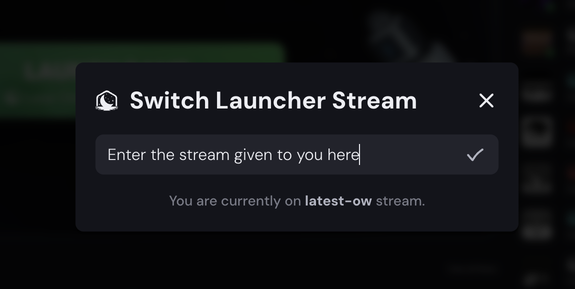 5. Enter the stream name provided to you by Lunar Client staff in the text box, and select the checkmark to save.